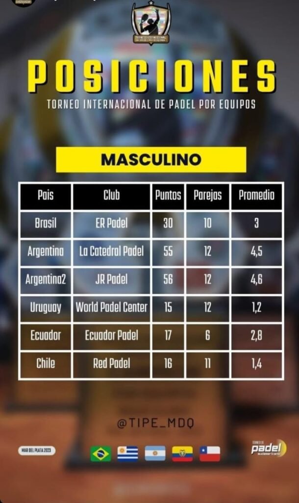 A equipe do clube ER Padel de Gravataí no Rio Grande do Sul, havia embarcado dia 1 de março rumo a Argentina, mais precisamente para a cidade de Mar Del Plata. A disputa aconteceu nas quadras do clube San Remo Sport Padel.