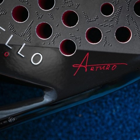 Com o formato diamante e equilíbrio alto, a raquete garante potência explosiva e controle nos momentos decisivos, além de um visual exclusivo que leva a assinatura de Coello e uma coroa em homenagem ao apelido “Rei Arturo”.