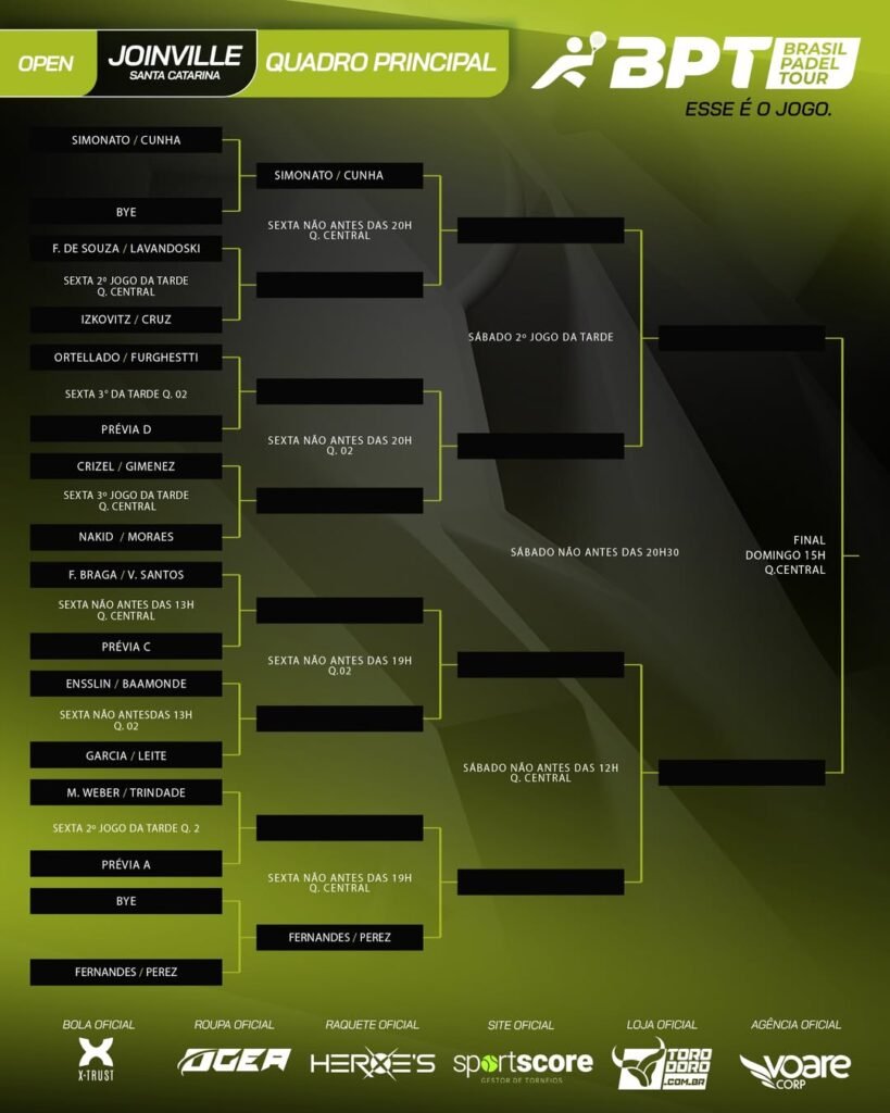 Com essas e outras boas disputas, o BPT Joinville Open 2025, trazido pela Federação Catarinense de Padel tem tudo para ser uma das mais disputadas etapas até o momento.