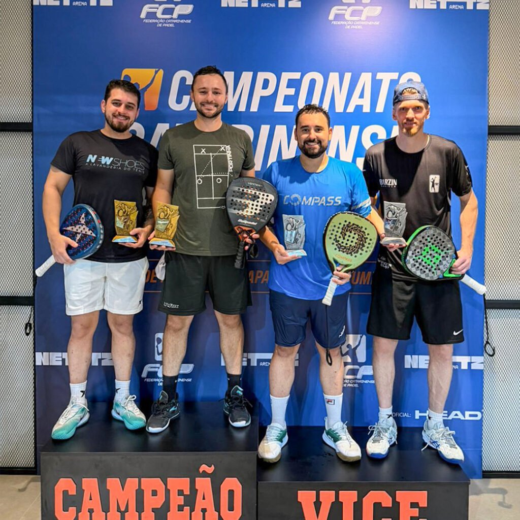 Finalistas da 1ª categoria masculina durante o Campeonato Catarinense de Padel. Foto: @photospadel